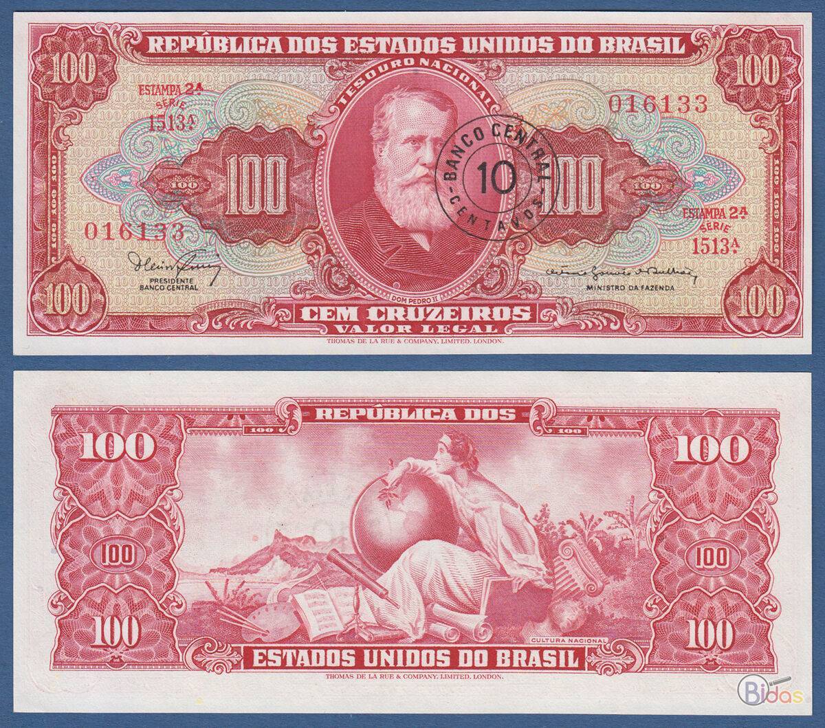 Brazilija 100 Cruzeiro 1966m. P185 Unc
