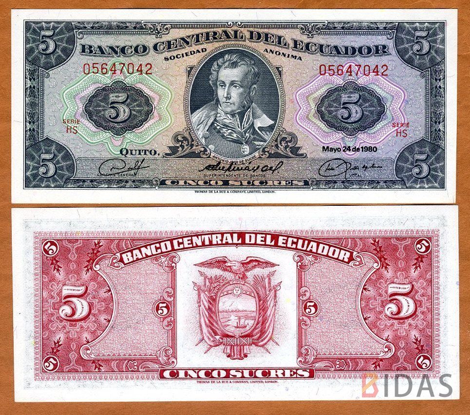 Ekvadoras 5 Sucres 1988m. P113 UNC