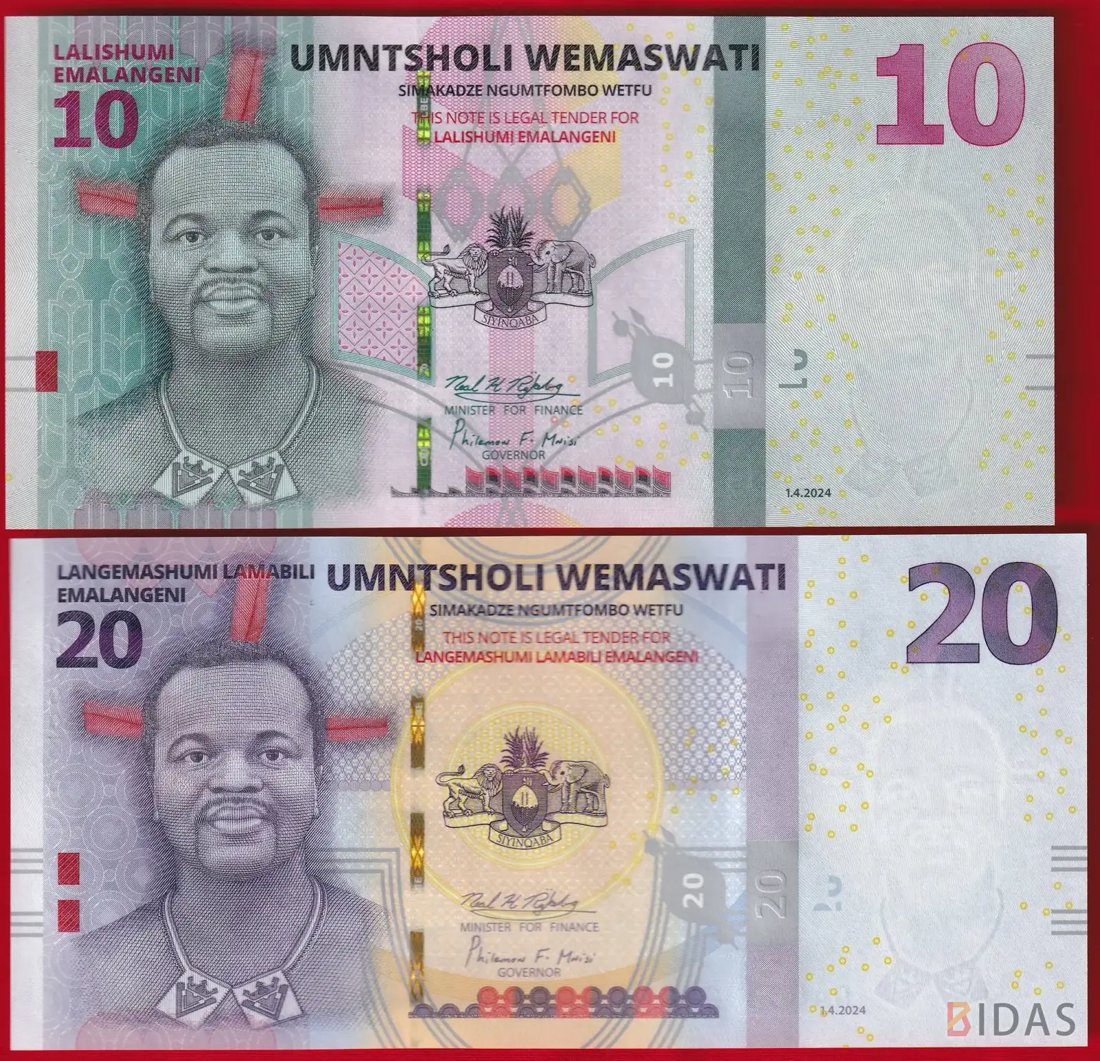 10 emalangeni 2024 P-WB44 UNC
