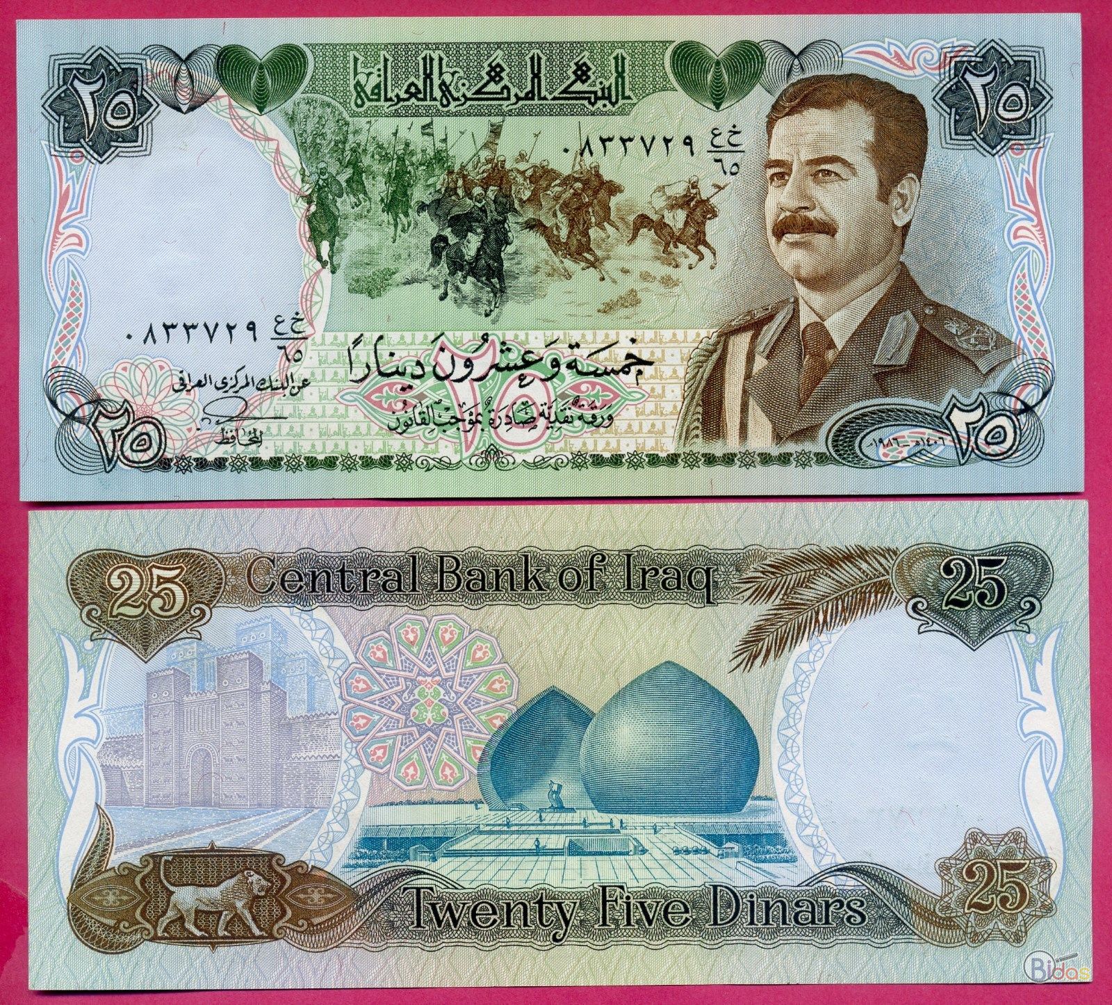 horsemen at center, Saddam Hussein at right. Signature 22. Back: City gate