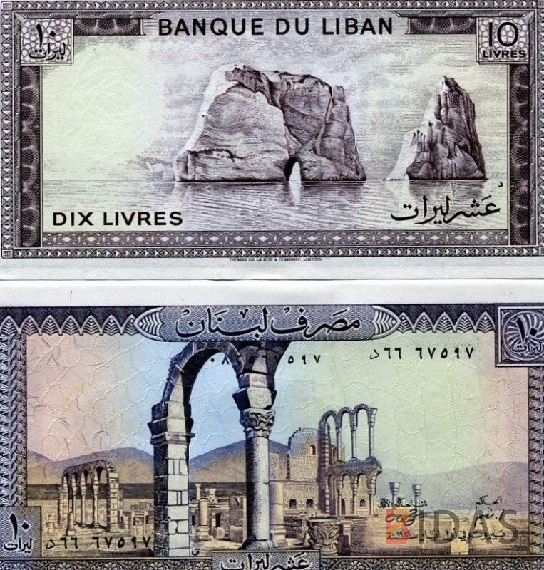 Back: Large rocks in water near Beirut. Watermark: Man's head. Printer: TDLR.