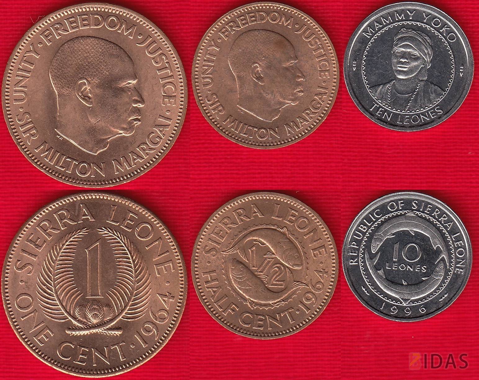 Siera Leonė 3 mon. rink. 1/2 c.-10 l. 1964-96 UNC