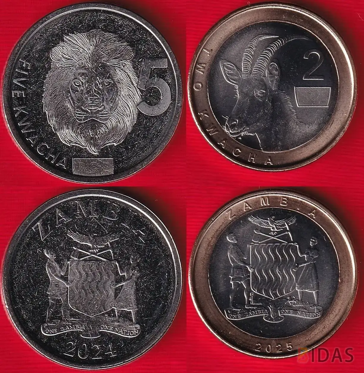 Zambija 2 mon. rink. 2-5 kwacha 2024-2025 UNC